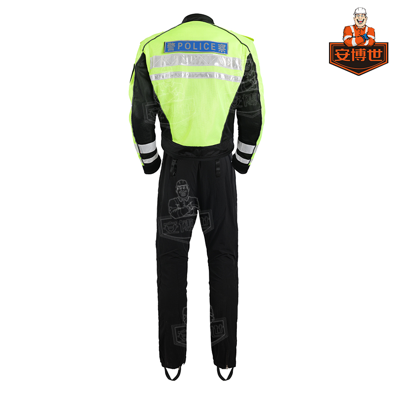 上衣前胸,左手臂及后背均配有反光标贴,臂章的魔术贴,以及对讲机及挂袢;上衣的下摆处配有四条腰带的挂袢;上衣前胸,后背及手臂上有大面积的3M W形反光晶格,可以明显提升执勤人员夜间的识别度,且此材料抗寒性好及耐高温,适合国内大部分城市使用;裤子具高弹力,耐磨,耐穿且穿着无束缚感的极强舒适性;采用正品3#YKK的门襟及裤脚银色金属拉链,开合顺滑耐用;裤脚处有高弹采脚设计,可以很好的防止裤脚往上收缩,腰部有三条耳仔扣设计从而起到更好地穿着美观度。 配有两个前袋,方便携带随身小件物品,且袋子的两边均有套结处理,美观,结实且耐用。