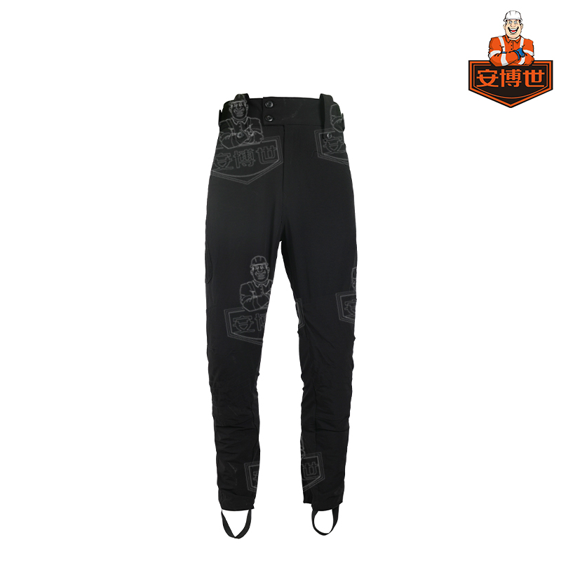 毛巾底锦纶四面弹材料(成份:92%尼龙+8%氨纶)。裤子在臀部,胯部及膝盖部位均车有双层的四面弹面料加强布从而起到更好的防护作用。
