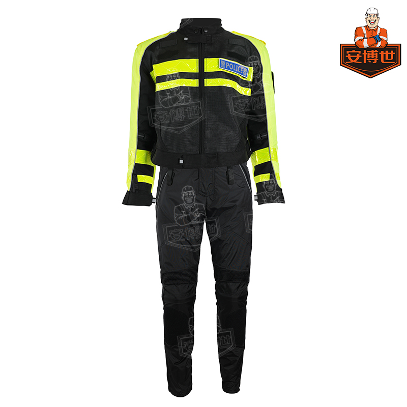 上衣前胸,左手臂及后背均配有反光标贴及臂章的魔术贴,以及对讲机的挂袢。上衣的下摆处配有四条腰带的挂袢。上衣及裤子均设有大面料反光滚边条,以提升夜间的行车安全。上衣下摆及裤子腰部均设有魔术贴可调节带。 内胆可以拆除单穿。